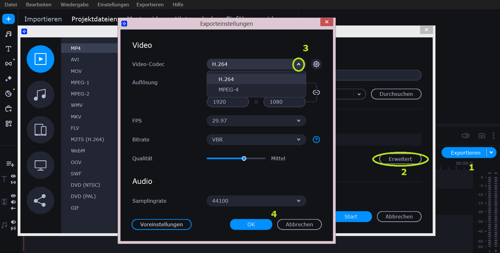 Exportieren Sie bitte Ihr Video nach einem anderen Codec: