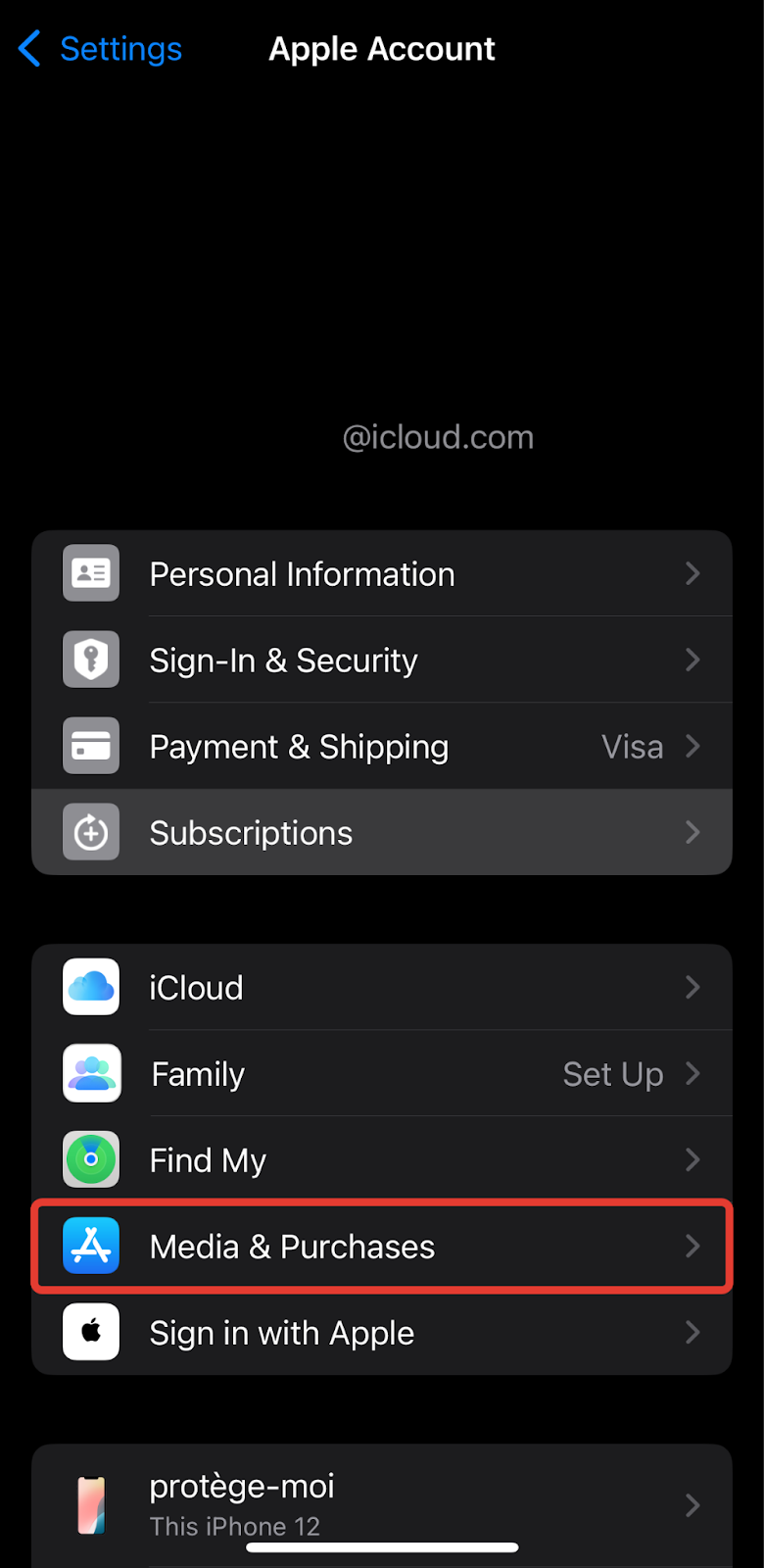Tap Media & Purchases → View Account (you may need to sign in).