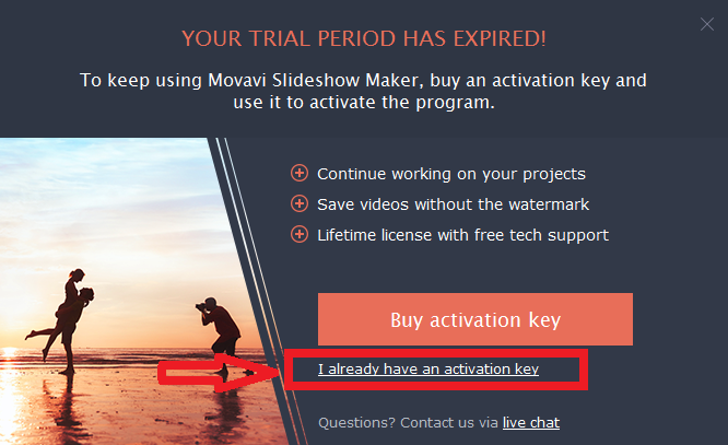 Wanneer u dergelijk nag-scherm ziet, klik op ‘Ik heb al een activeringssleutel’, of selecteer de knop ‘Activeren’.